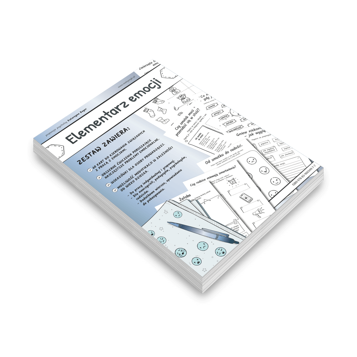 Jest to bardzo prosty sposób na przygotowanie na każde zajęcia efektywnego narzędzia pracy. Zestaw “Elementarz Emocji” spowoduje, że spotkania staną się ciekawsze, inspirujące do dalszych rozmów. Pozwolą w łatwiejszy sposób porozmawiać na tematy trudne, nie pytając o nie wprost. Otrzymasz gotowe ćwiczenia, sposoby w jakie można przerobić dany problem.